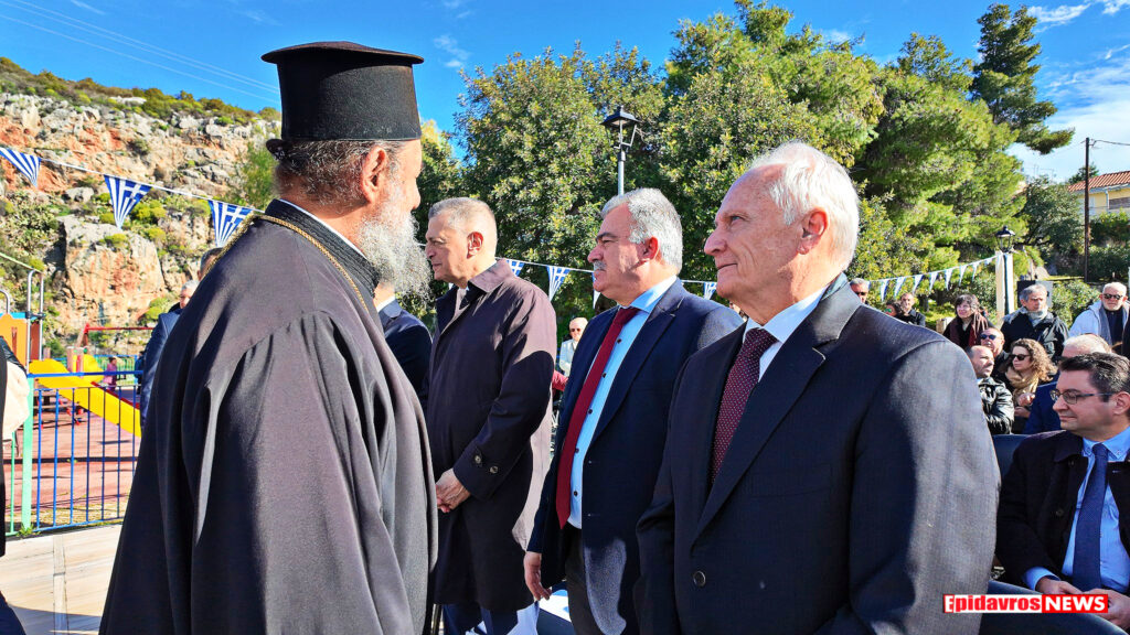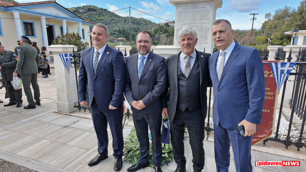 Οι εκδηλώσεις ξεκίνησαν με δοξολογία στον Ιερό Ναό της Ευαγγελίστριας Επιδαύρου και ακολούθησαν οι επίσημοι χαιρετισμοί και η κατάθεση στεφάνων.